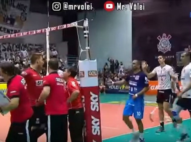 Just like in Game 1, the referee had to calm down the situation on the court by giving a red card. And not one. At 17-17 in the second set, several players on both sides started a trash-talk through the net. Prior to this, Sesi players complained to the referees because they missed calling a center line violation of Luiz Sene „Luizinho“. Exactly Luizinho from Corinthians and Murilo Endres from Sesi were red-carded for arguing. You will not see so often that two opposing players get a red card in a single game. The score was 18-18 after this.