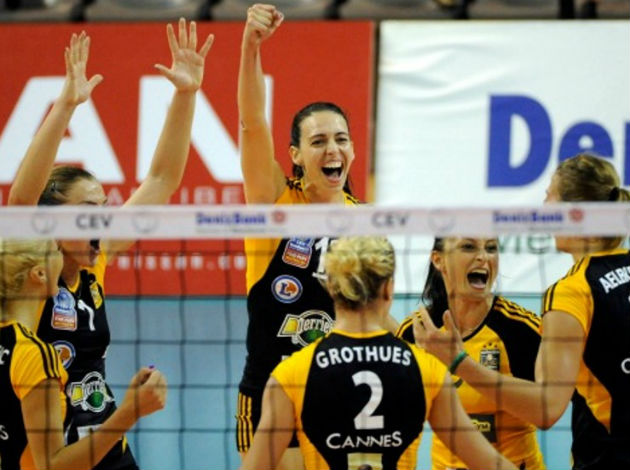 The game was intense and close, but only until tie break in which RC Cannes totally outplayed Volero.