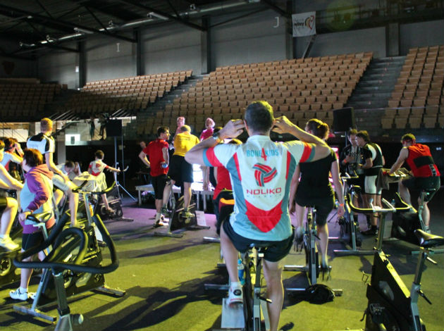 A spinning marathon was organized by Belgium’s multiple champions with the primary goal to raise funds for these organizations. The center court of the Lotto Dôme was turned into a huge spinning room where some extra space was reserved to the sponsors and the fans of the 81 participants.