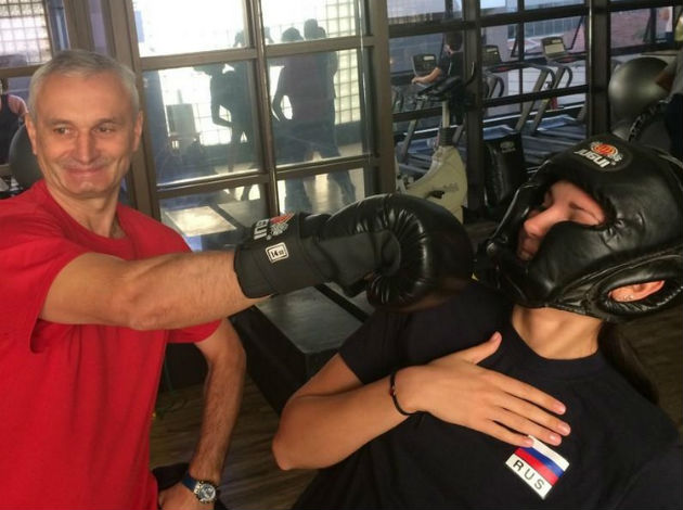 Anyway, it seems that boxing is a normal part of Russian National Team training. Even coach Marichev decided to join in… And Nataliya Malykh was his sparring partner…