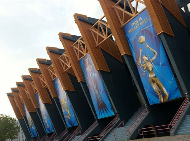 Palaflorio – which is named after the late Pietro Florio, a former president of the Italian Volleyball Federation (FIPAV) – is now dressed up with banners and huge boards advertising the World Championship.