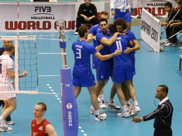 The second set was just as close early, with Priddy and Stanley attacking well for the USA, and Savani countering for the Italians until they reached 10-10. Alessandro Fei put his side up three with an incredible block on Stanley to make it 16-13. Russell Holmes brought his team within one with a spike followed by a block on Simone Parodi to make it 21-20, but a Savani block would eventually clinch another close frame for Italy 25-22 to go up 2-0.