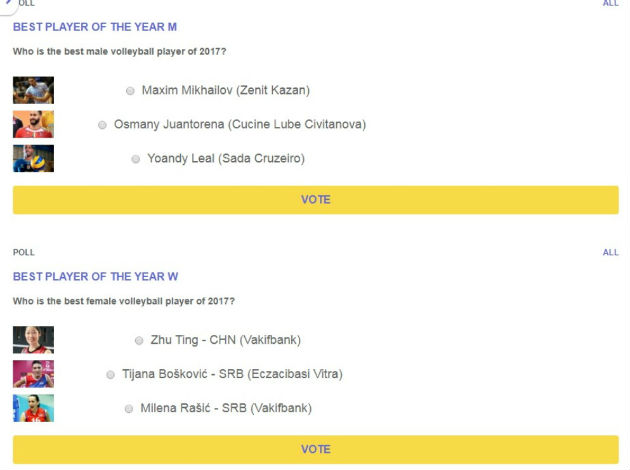 Yoandy Leal, Maksim Mikhailov, and Osmany Juantorena have qualified for the second stage in the Men’s competition. As for the Women’s competition, Zhu Ting, Tijana Bošković, and Milena Rašić survived the initial round of voting.