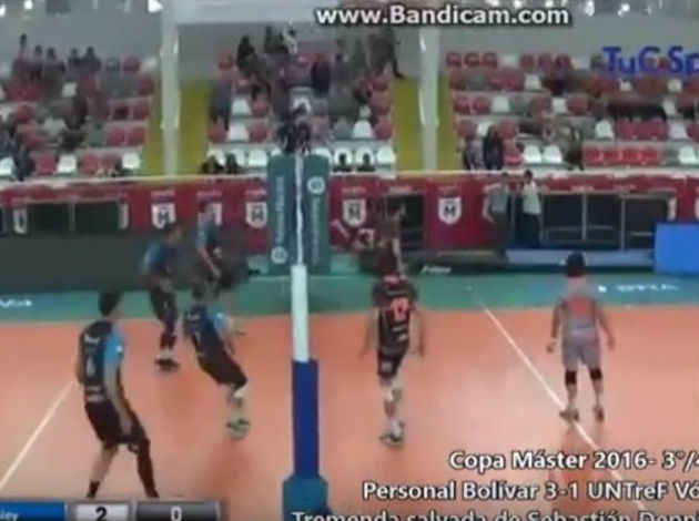 UNTreF Vóley setter Sebastián Deppiaggi was obviously watching Thomas Edgar’s save and performed exactly the same! He crashed into advertising panel, fell on the floor along with it, but performed an outstanding dig!
