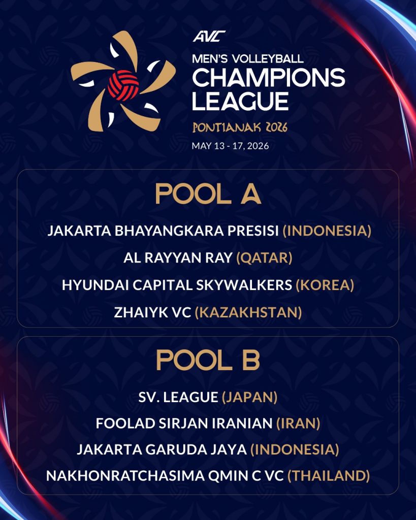 The official draw for the AVC Men’s Volleyball Champions League Pontianak 2026 has been completed, confirming pools and opening matchups for Asia’s top club competition.
