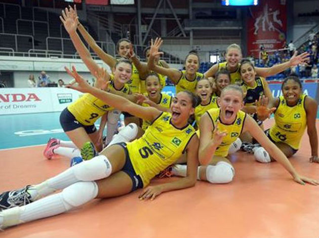 Brazilian girls celebrating their victory