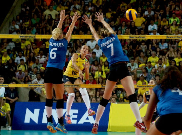 Brazil were stunned early on by the Dutch whose solid blocking built a steady lead mid-way through and the eventual take over of the first set 18-25. Brazil eventually overcame the next three sets but were heavily challenged by the hounding offensive knack of the Dutch team.