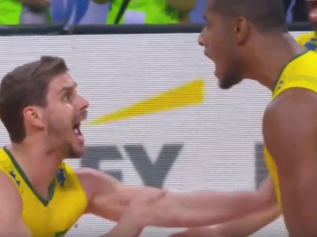 He firstly received a strong spike with his chest. Many would end up on the floor after that, but not Lucarelli. Brazil’s receiver/outside hitter remained on his feet and finished the rally with huge 3-meter spike which was, by the way, set by middle blocker Lucas Saatkamp ’Lucão’! What a crazy point…