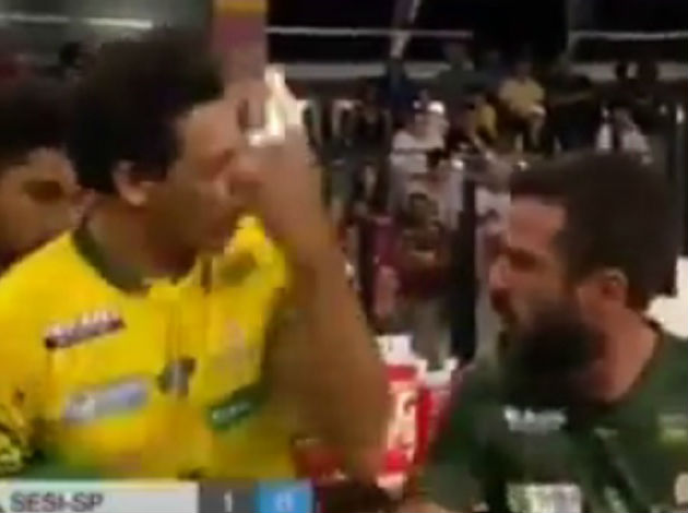 Montes Claros’ coach and player have exchanged a few words during the time-out but fortunately for all, both avoided some physical contact…
