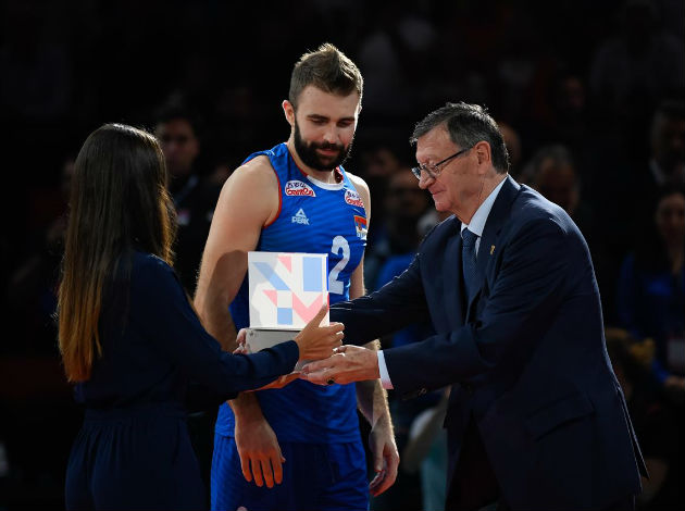At the closing ceremony after the final that was held at the AccorHotels Arena in Paris, France, the European Volleyball Confederation (CEV) President Aleksandar Boričić handed the trophy for the Most Valuable Player of the 2019 EuroVolley to his compatriot, Serbia’s outside hitter, Kovačević. The 26-year-old player was not the top scorer of the winning team in the gold medal match but his overall play against Slovenia and also in the tournament put him into position to get the award.