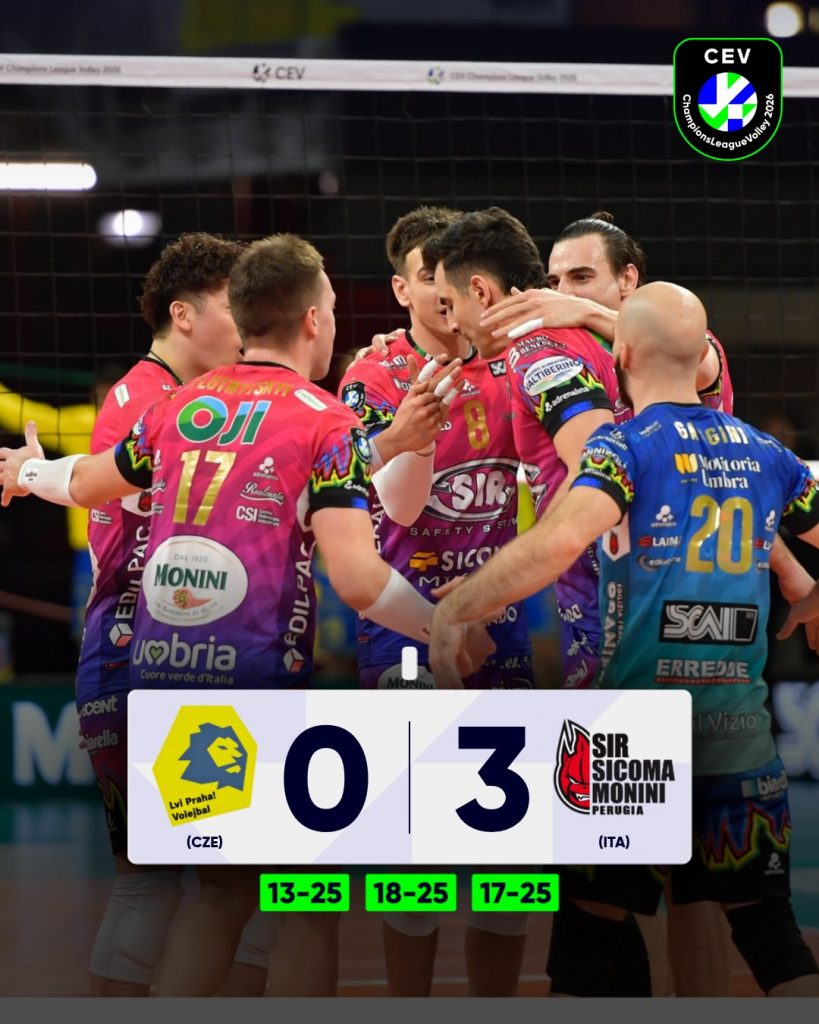 Perugia confirmed their dominance in Pool C with a straight-sets win over VK Lvi Praha, sealing first place and direct qualification to the CEV Champions League quarterfinals.