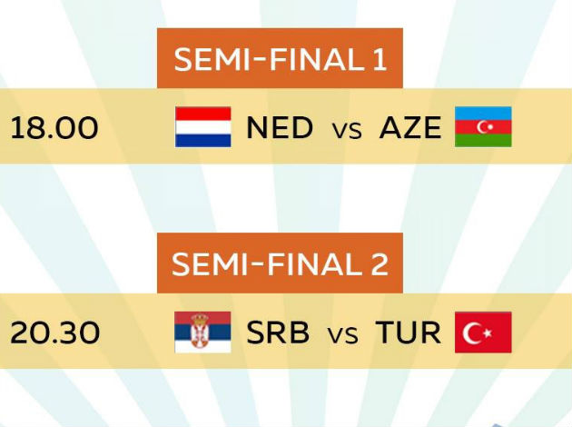 In the first semifinal at 16:00 CET the Netherlands will face Azerbaijan. The Dutch team three times defeated Azeri in their matches while Azerbaijan were better in the last two games 2015 and 2017.