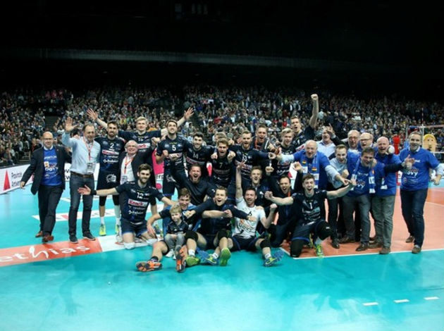 In a spectacular final match in front of 18,000 spectators, who were visibly separated on the stands into “blue” and “red” fans, at Sportpaleis in Antwerpen, Knack Roeselare defeated Noliko Maaseik by a 3-1 (25-22, 23-25, 25-16, 25-23) to win the 2017/18 Belgian cup (Beker van België).