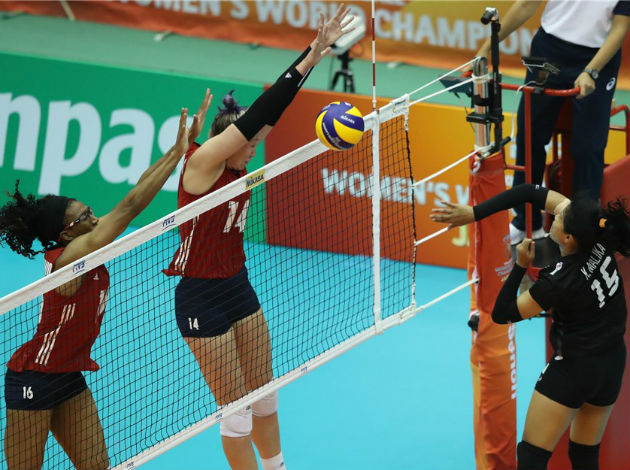 Michelle Bartsch-Hackley led the American scoring with 23 points, including 17 spikes, and middle blocker Foluke Akinradewo added 17 points with seven blocks.