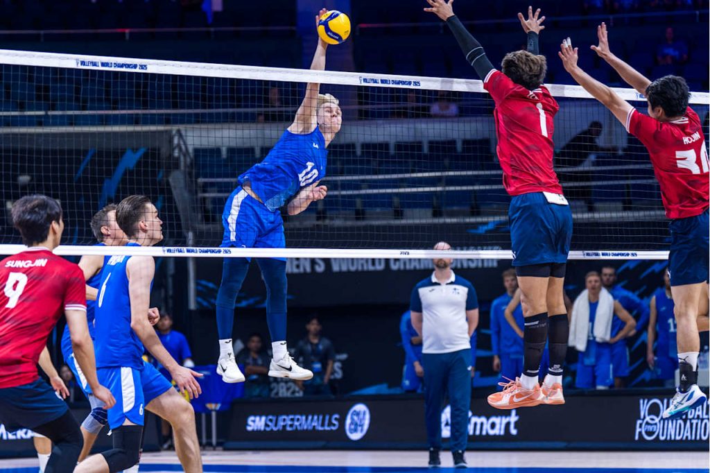 The Finns couldn’t secure the straight-sets win that would’ve sealed qualification, but they still earned a vital result with a 25-18, 25-23, 17-25, 25-21 victory. Luka Marttila led all scorers with 25 points, while Joonas Jokela chipped in 21. For Korea, Shin Hojin kept things close with 24.