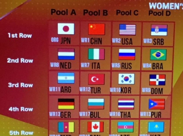 Pools composition for the First Round of the 2018 FIVB Women’s World Championship: