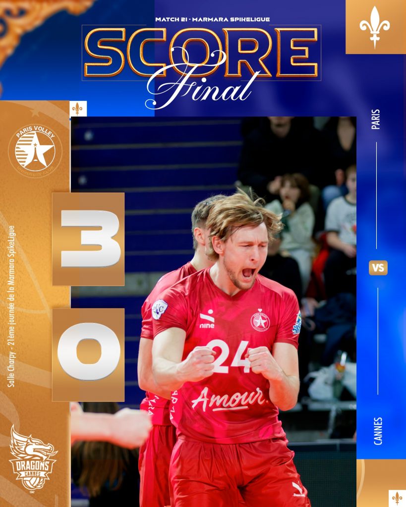 Paris strengthened their position in the Marmara Spike League standings with a straight-sets victory over Cannes, winning 3-0 (25-22, 25-23, 31-29) in Round 21 action.