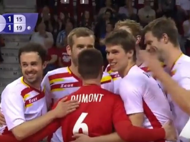 Poland’s Dawid Konarski has done lob serve, but the ball touched the net and changed direction. It tricked Dumont, who dived for lob, so he had to perform an amazingly acrobatic save!