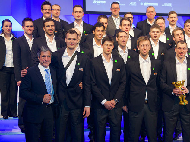 However, an occasion that certainly capped the last year for the likes of BERLIN Recycling Volleys was the 2013 election of the sportsmen, sportswomen and teams in the city of Berlin. For the first time in the club history – after a surprising third rank last year – the team of head coach Mark Lebedew was voted “Team of the Year 2013” in the sports-minded city of Berlin leaving behind Hertha BSC Berlin (football) and the popular ice hockey team EHC Eisbären Berlin.