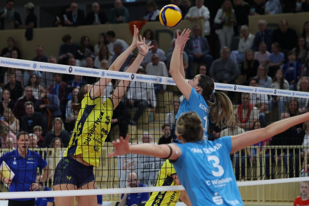 Schwerin had to work hard in Wiesbaden, eventually taking the match 27:25, 25:19, 22:25, 25:13 after an intense contest. The first set set the tone for the night, with both teams trading points before Schwerin edged it late at 27–25.