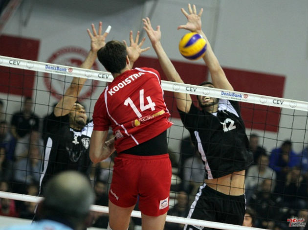 “It started with some odd behavior of one the players of PAOK (Javier Jimenez) at the end of the second set. He scored a point and celebrated it on a quite unusual way. He started screaming to the pole of the net! It looked funny and sad at the same time. When we lost the second set by the narrow margin, a shower of water bottles was thrown toward the opponent; our audience freaked out. I think the game has been stopped for half an hour.”