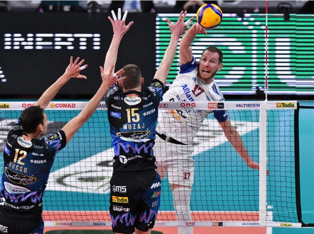 The Frenchman Jean Patry top-scored Milano with 23 points, while Slovenian Tine Urnaut added 18 points on the scoresheet. The no.3 Itas Trentino managed to avoid the same fate as Perugia. They also needed to play 5 sets, prevailing over the 6th-seed Gas Sales Bluenergy Piacenza in Game 1.