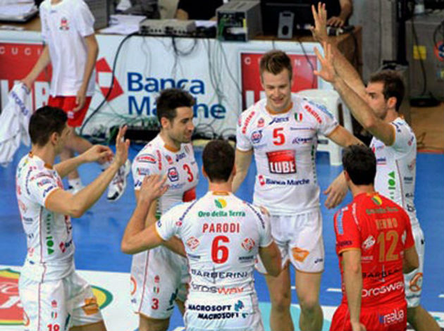 CUCINE LUBE BANCA MARCHE: Lampariello, Henno (L), Paparoni 7, Vitelli 10, Patriarca 16, Martino 17, Monopoli 2, Provvisiero dnp., Bulfon 1, Baranowicz 1, Fabi dnp., Spescha 18. Coach. Giuliani.