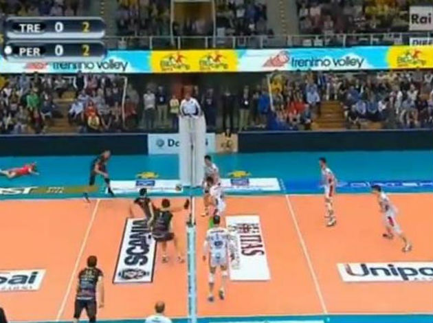 He managed to save the ball and to make a perfect set to his teammate! Perugia lost the semifinal series against Trentino (2-1).