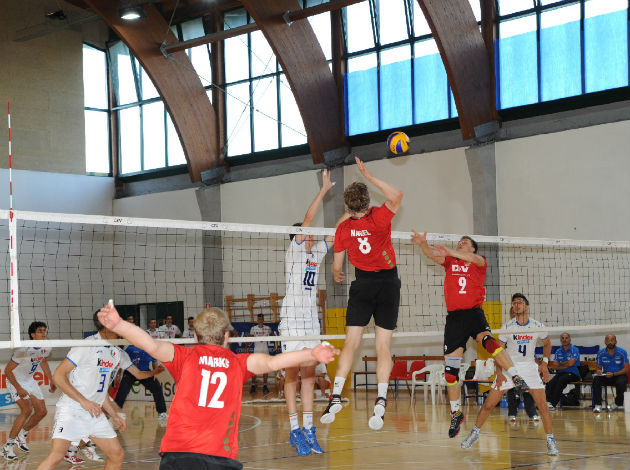 Italy caught a flying start going up 16:9 in the opening set but their opponents did not give up that easily and with a series of good services they shook Italy’s defense line, eventually tying the score at 18 all. The group around Edoardo Picco responded going up 24:21 with some blocks to stop the German spikers but the hosts eventually missed out on three set balls, with Germany turning the charts around for the provisional 0:1 (24-26). The second set followed a similar plot with Italy going up 16:11 but once again Germany fought its way back up to 17:16. However, this time the “Azzurrini” did not lose composure and could finish it off at 25-22.