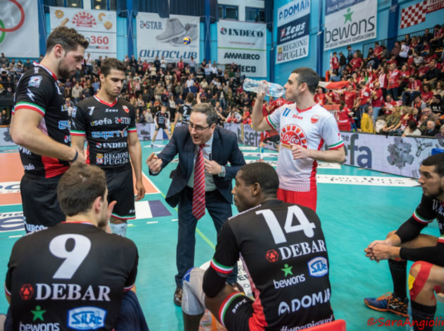 Reigning champions of Serie A1, Diatec Trentino, were once again wounded at „PalaPoli“ gymnasium, this time in four sets, partially 22-25, 25-21, 25-20, 25-19. The series is tied – 2-2! The Cuban Fernando Hernández got all the credit for Molfetta’s win with 19 points. Now, the series returns to Trento for the decisive game, Game 5, on April 3.