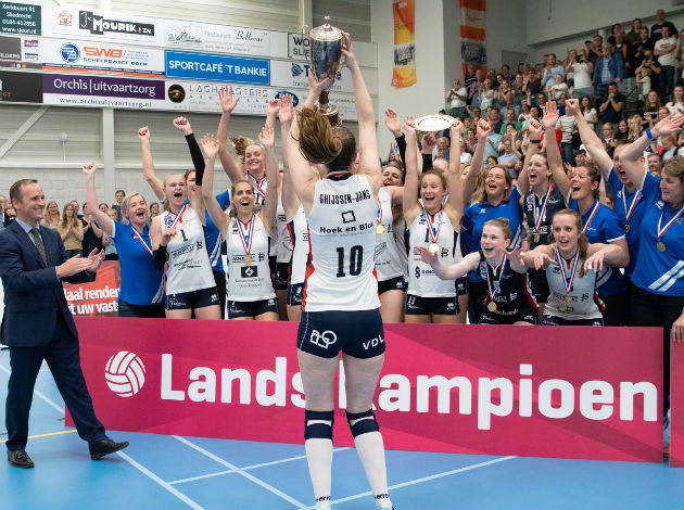 Sliedrecht Sport claimed the third national championship in a row. After earning a top seed (17-1, 49 points in the regular season and 9-1, 31 points in Top 6), Sliedrecht Sport gained a home ground advantage in the 2018/19 Eredivisie dames playoff finals, which turned to be far from an equal fight, against the second seed VC Sneek.