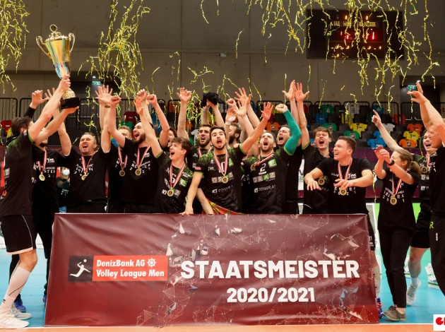They swept the playoff final series of the 2020/21 DenizBank AG Volley League against 2-time consecutive titleholders SK Zadruga Aich/Dob (commonly known as Posojilnica) by a 4-0. Graz won Game 4 by a 3-1 (20-25, 25-21, 25-22, 25-18). Zadruga faced several handicaps in this match. For the first time in the series, they were deprived of help from their head coach, Slovenian Matjaž Hafner. Also, during the encounter, their starting opposite hitter, Lithuanian Arvydas Mišeikis, got injured.