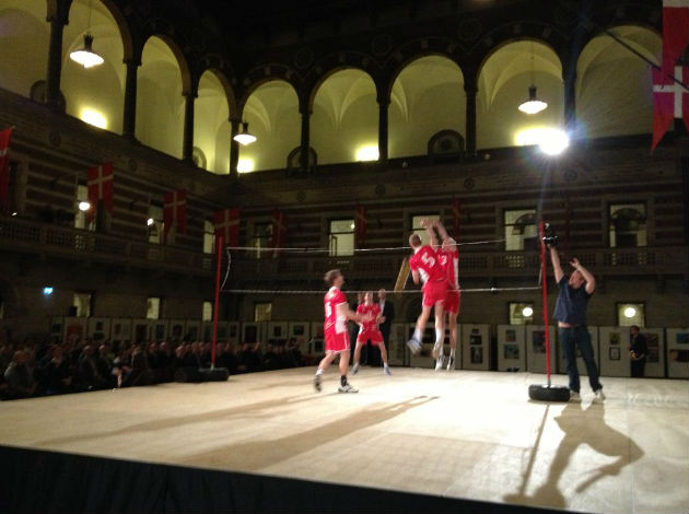 That action was organized by the City of Copenhagen and joined by the 2012 national champions in all sports for a show that was extensively covered by the national television as well as by other TV stations and numerous newspapers. In order to draw attention on the EuroVolley 2013, members of Denmark’s junior national team – who last year participated in the European Championship held in Randers – took the stage there in the City Hall where a small Volleyball court was set up and the players could show the uniqueness of their sport.