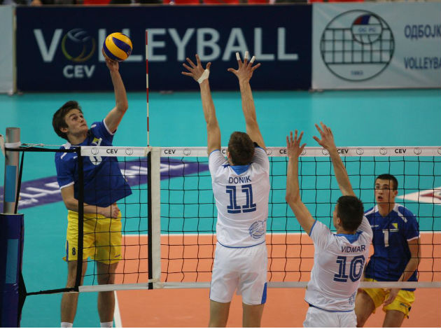 Despite playing against the host team, the Slovenian boys felt at home as a very large and noisy crowd of fans supported them whole-heartedly from the stands of the Laktaši sports palace throughout the match. The team of Iztok Ksela totally outplayed its opponent in all elements of the game during the first two sets. The Slovenian serve made life difficult for the team of Bosnia and Herzegovina as it piled up 6 aces against none for the opponents in these two sets. Excluding the first point in set 2, there was not a moment when the home boys were in the lead as Slovenia won convincingly by 25-13 and 25-15.
