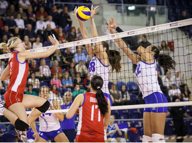 In a battle for first place in the group Slovakia beat Greece in four sets. Greece started very good, played better in attack and reception and won the first set after a close final rush (25-27). The Slovakian girls were not in a good rhythm also in the second set and their head coach was forced to make changes in the line-up. Greece went up 21:19 but Slovakia came back and won the set 25-21. The first part of the third set was very close, but then Slovakia pushed by 700 fans widened the gap and could go for a second 25-21. This was the turning point of the match, Greece didn’t find the power to answer and the last set was completely under control of the home team. “We have played very slow in attack in the first set. Then we changed our game, our libero and middle-blocker played a great match and I am happy with the win. We have reached our goal to win the group here” the head coach of team Slovakia Miroslav Cada commented. “It was like two different matches today. We started good, we were disciplined and we played good. But we were afraid of winning the second set and then it was difficult for us to come back into the match. Second place was our goal, but we feel that we could have achieved more” the head coach of team Greece Ioannis Kalmazidis concluded.