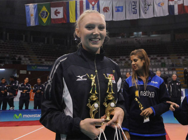 The emerging American star received her trophies at the closing ceremony of the event chaired by Cristobal Marte Hoffiz, president of NORCECA Confederation and Pan American Union, Rafael Lloreda, president of the South American Confederation and Luis Linares, president of the Peruvian Volleyball Federation.