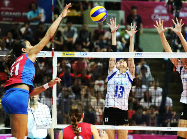 Thailand, FIVB world No.12 and an incredible fourth place at the last year’s Grand Prix, fielded an impressive line-up which included powerful attacker Onuma Sittirak, Wilavan Apinyapong and home crowd favouite Pleumjit Thinkaow, while talented Karina Ocasio spearheaded the Puerto Rico’s explosive attacks. The Puerto Ricans got off to a convincing start, with the 192cm-tall Ocasio using her height advantage to attack aggressively at the net to help the world No.18 take an initial 13-7 lead. The Thai nerves began to fray when the visitors stormed on their mighty attacks. Puerto Rico, which have yet won a match in this year’s Grand Prix, stunned the off-form Thais and silenced their cheering home fans with a sensational 25-18 win in the opening set.