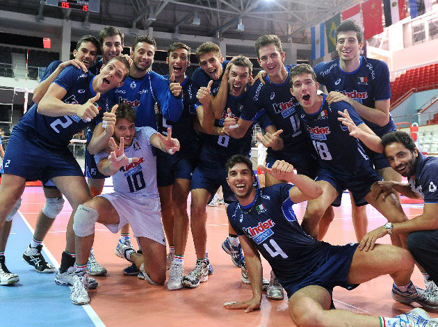 Italy team celebrate victory over Serbia