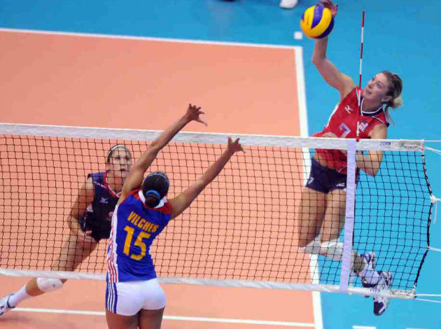 Jennifer Alvarez finished with only 9 tallies for the Caribbean team that is now 0-2 after two very tough matches. USA (2-0) had 11 block kills and Cuba 9. However, serving was again a key factor for Karch Kiraly’s squad after 5 team aces (2 by Ariel Turner) against none by Cuba.