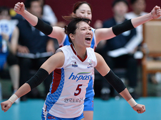 Kim Hae-Ran, libero of Expressway, was the main target of Hungkuk Pink Spiders in one attack. She had to “survive” two strong spikes in only couple of seconds, but she handled it just fine.