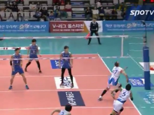 During third set, Szabó was chasing to save the ball outside the field. He did not make it, but he ended up at his team’s bench, on the floor, risking to sustain some injury.