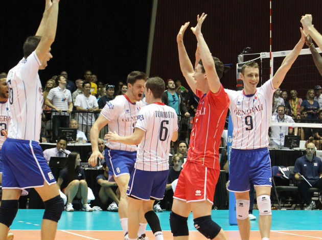 The score was tied 6-6 in the first set when France scored three straight points, including attacks from Marien Moreau and Kevin Tillie. France extended its lead to seven at 19-12. With France leading 20-14, the U.S. men scored three straight points on two spikes from David Lee and one by Priddy to pull to within three at 20-17. The U.S. later cut the lead to two at 21-19. But that was as close as they got as the European side pulled away, reaching set points at 24-20 and winning on a U.S. hitting error.