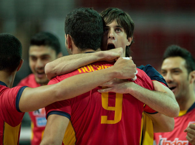 Spain was leading the score through almost the entire first set with the gap reaching as many as 6 points at 13-7. Slovakia came back into the set not only to even the score at 20-20, but also to get the first set-point at 24-23 after Spanish coach Fernando Muňoz Benitez decided to give some rest to captain Guillermo Hernan and top spiker Iban Perez. Spain survived this and then two more set-points for Slovakia before Hernan and Perez came back on court. With Jorge Fernandez blocking for the last point his team eventually won the set by 28-26.