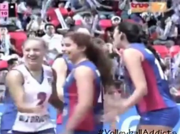 The entire rally could fit into these words – the brilliance of liberos. Firstly, German Lenka Dürr had an amazing full-court save. Afterwards, her colleague Shara Venegas scored while digging!