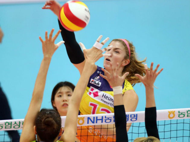 In today’s win against KGC Daejeon, American couldn’t score 3-meter spike in three attemepts! It was a true struggle…