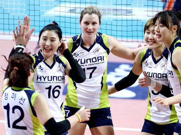 Hyundai defeated their direct competitiors for playoff spot, Heungkuk Life Pink Spiders 3-1 (25-16, 25-22, 16-25, 25-19).