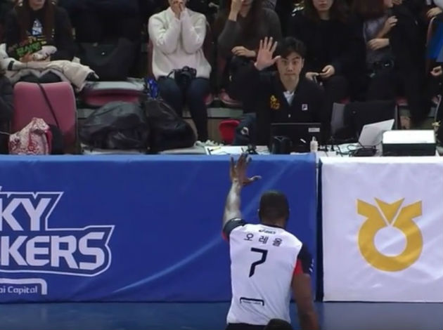 He performed a dig from the table of Rush&Cash’s statistician. By digging, Camejo tore down the equipment of a poor guy.