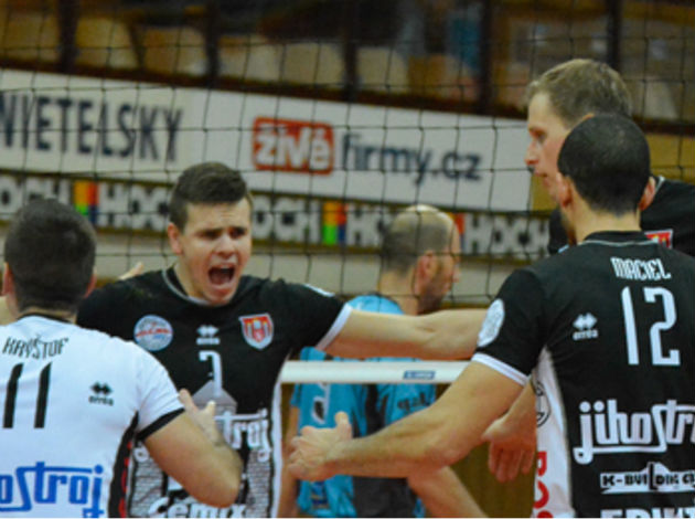 Jihostroj have amazing setter-opposite connection! Filip Habr knows he always has Brazilian Daniel Macielready to score, even from difficult situations. And that’s what happened in this rally.