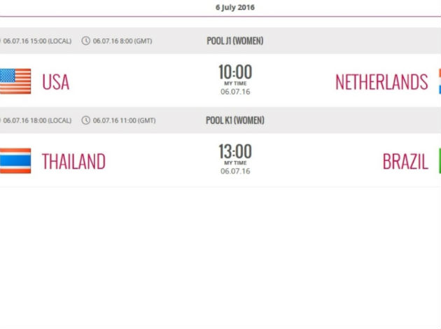 13:00 CET – Pool K: Thailand – Brazil