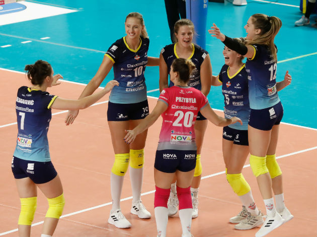 Developres SkyRes Rzeszów recorded the sixth win in as many games played in the 2020/21 TAURON Liga regular season. After beating BKS Stal Bielsko-Biała on the road in Round 7 in straight sets – partially, 25-20, 25-13, and 25-20 – Developres became even more isolated at the top spot in the charts. Canadian Kiera Van Ryk top-scored the winning side with 15 points, while Gabriela Polańska made 4 blocks.
